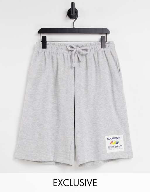 Pantalones cortos gris jaspeado extragrandes con detalle de parche de COLLUSION Unisex