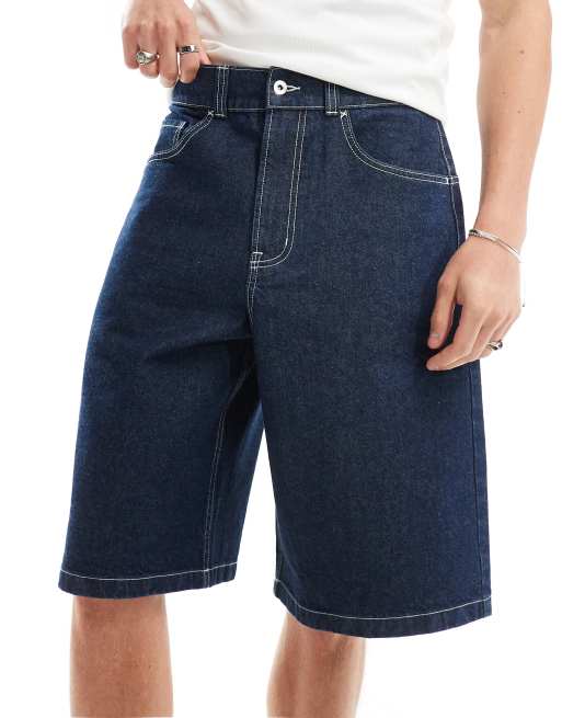 Pantalones cortos vaqueros de corte skater alargado con lavado enjuagado y pespuntes en contraste de COLLUSION