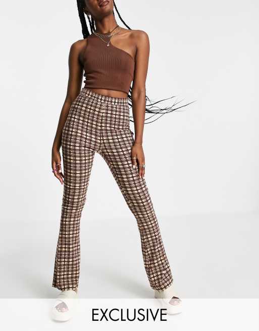 Pantalones de campana de corte slim con estampado de cuadrícula de COLLUSION