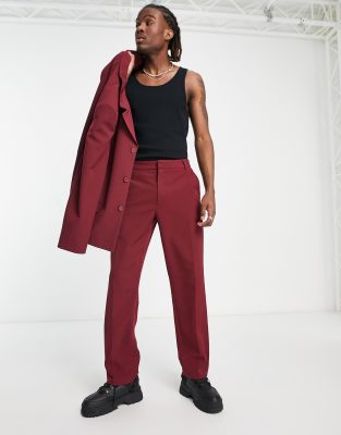 Pantalones de vestir color vino de pernera recta de COLLUSION (parte de un conjunto)