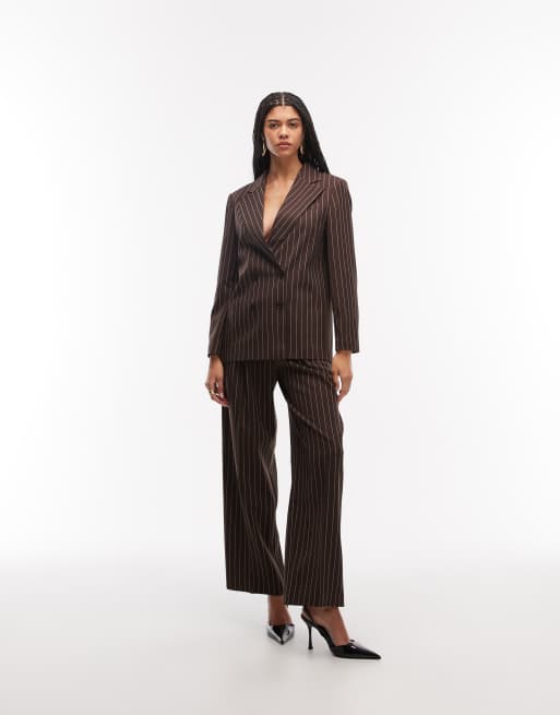 Pantalones marrón chocolate de pernera ancha con raya diplomática y pinzas de COLLUSION (parte de un conjunto)