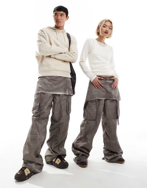 Pantalones marrón lavado utilitarios con falda desmontable Iconic de COLLUSION Unisex