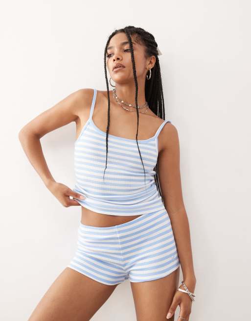 Pantalones muy cortos a rayas azules y blancas de COLLUSION (parte de un conjunto)