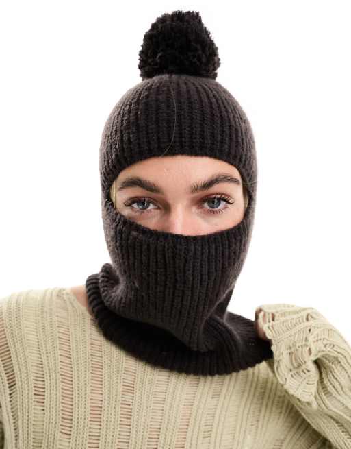 Pasamontañas marrón chocolate con pompón de COLLUSION