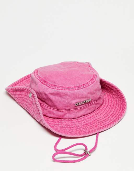 Sombrero de pescador rosa lavado con detalle de tiras para festivales de COLLUSION Unisex