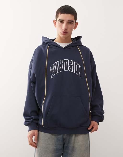 Sudadera azul marino de corte cuadrado extragrande con capucha y ribetes de COLLUSION