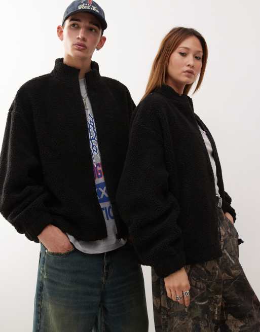 Sudadera gris carbón con cuello alzado y cremallera de borreguito de COLLUSION Unisex