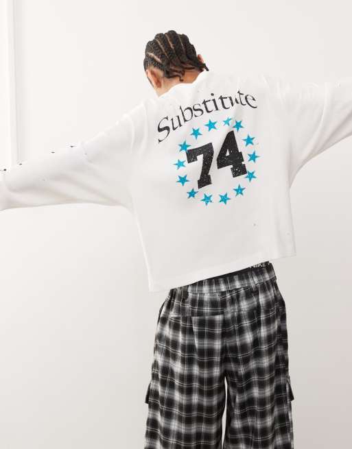 Top color crudo extragrande de manga larga con estampado "Substitute" de COLLUSION