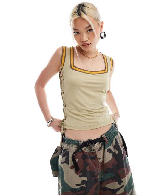Top corsetero caqui con ojales y refuerzos de COLLUSION