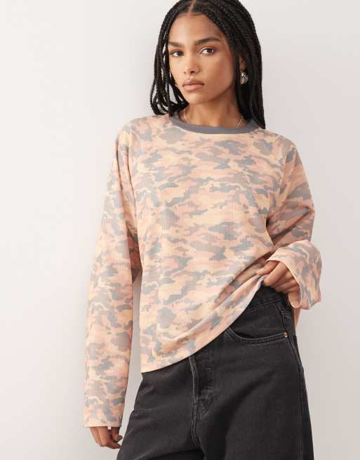 Top de corte antifit y manga larga con estampado de camuflaje de tejido gofrado de COLLUSION