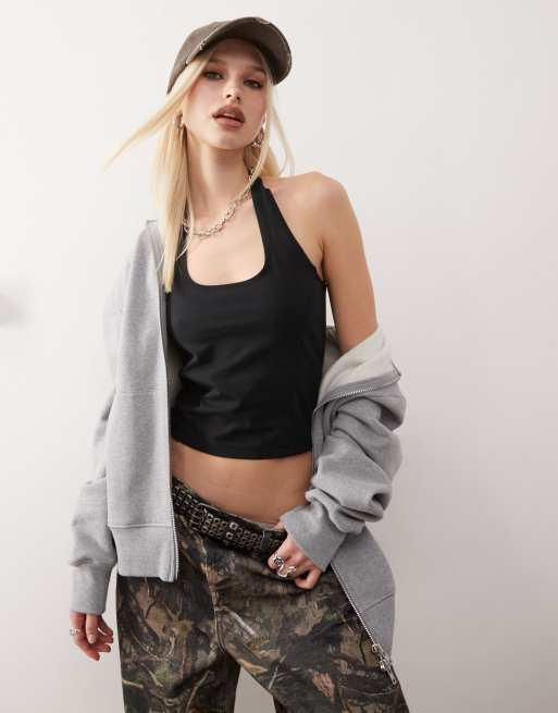 Top negro con cuello halter y detalle de ribetes de COLLUSION
