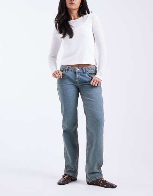 Vaqueros azul deslucido de corte suelto y talle bajo de COLLUSION