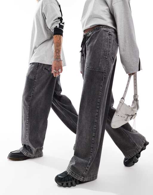 Vaqueros negro lavado de corte skater holgado de COLLUSION Unisex