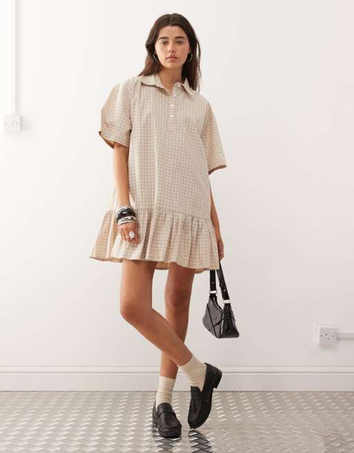 Vestido camisero a cuadros beis con falda plisada de COLLUSION
