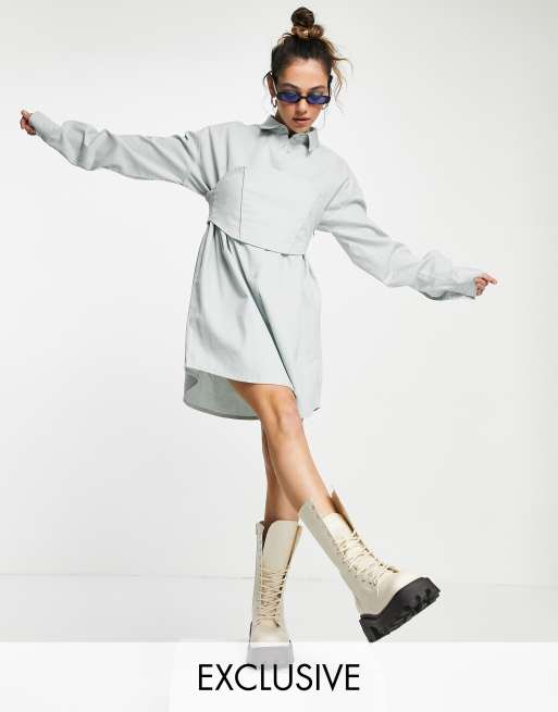 Vestido camisero corto azul claro con corsé de COLLUSION