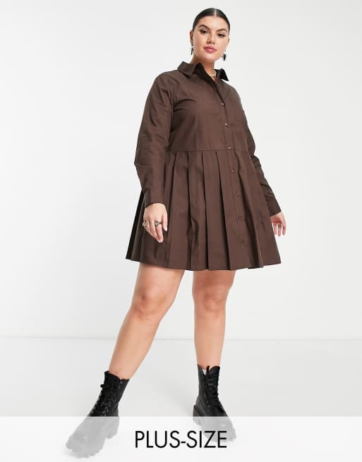 Vestido camisero corto marrón plisado de COLLUSION Plus