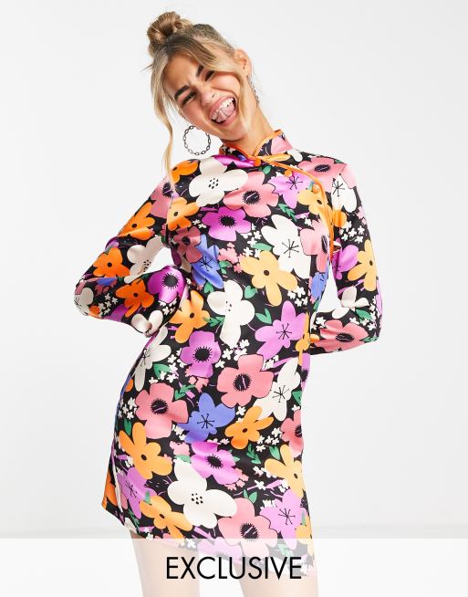 Vestido corto con estampado floral y mangas acampanadas de COLLUSION
