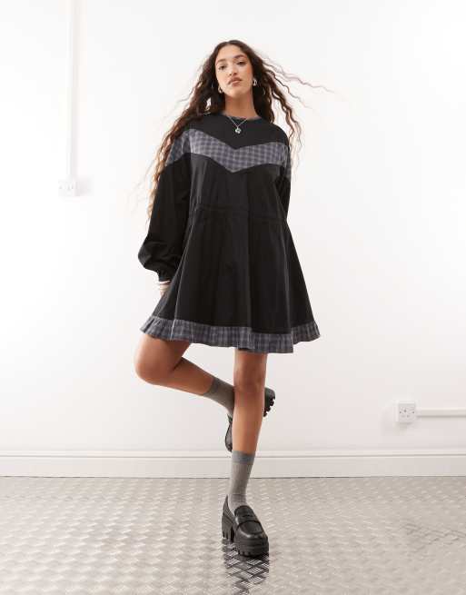 Vestido corto negro y gris a cuadros de corte amplio de COLLUSION