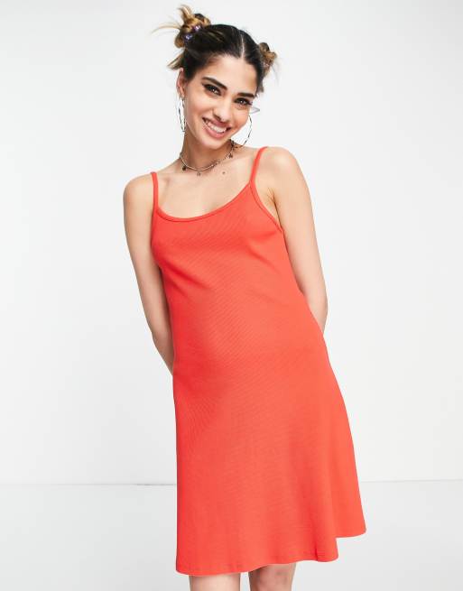 Vestido corto rojo estilo babydoll con tirantes finos y borde en contraste de COLLUSION