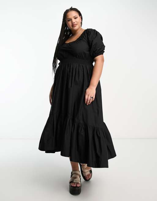 Vestido largo negro amplio con corpiño fruncido de COLLUSION Plus