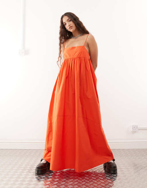 Vestido largo rojo de tirantes de tejido liso de COLLUSION
