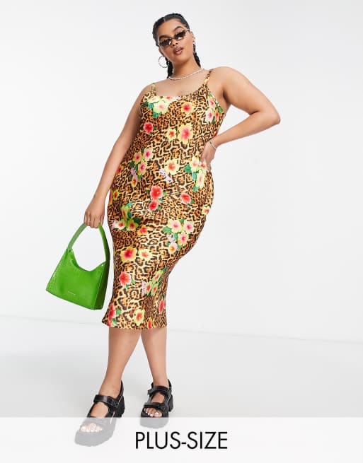 Vestido lencero largo con estampado de leopardo y flores de satén de COLLUSION Plus