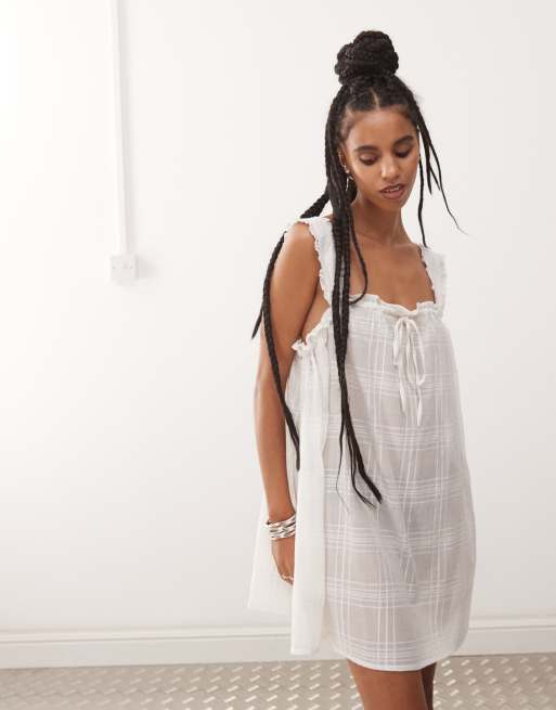 Vestido playero blanco a cuadros con vuelo de COLLUSION