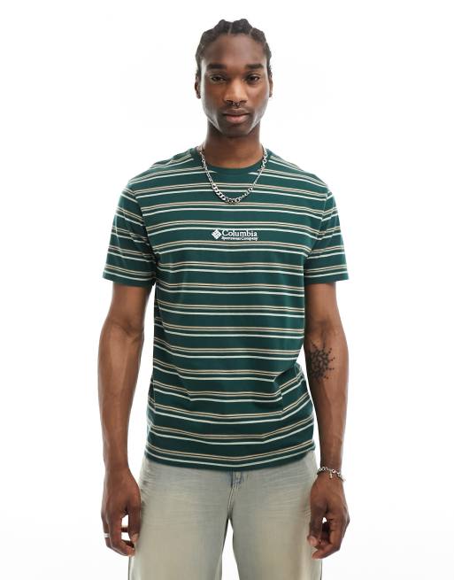 Camiseta verde oscuro a rayas con logo bordado CSC de Columbia