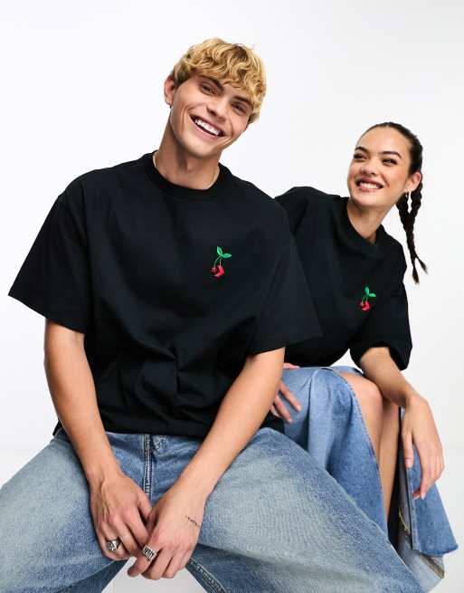 Camiseta negra con logo de cerezas de Converse
