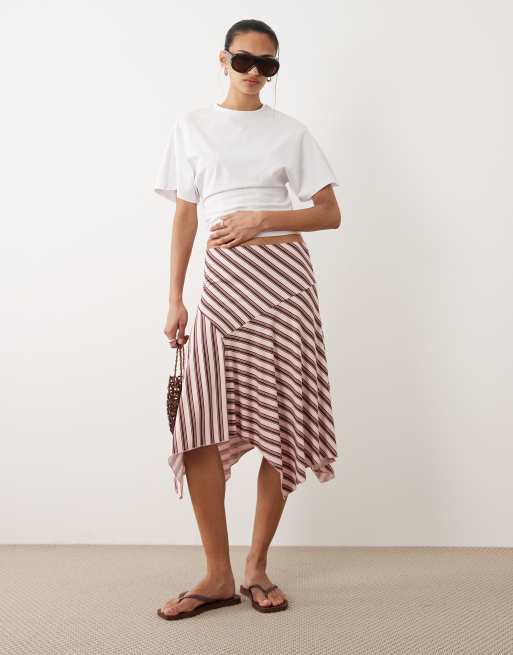 Cotton On - Falda midi a rayas rosa peonía Sandy