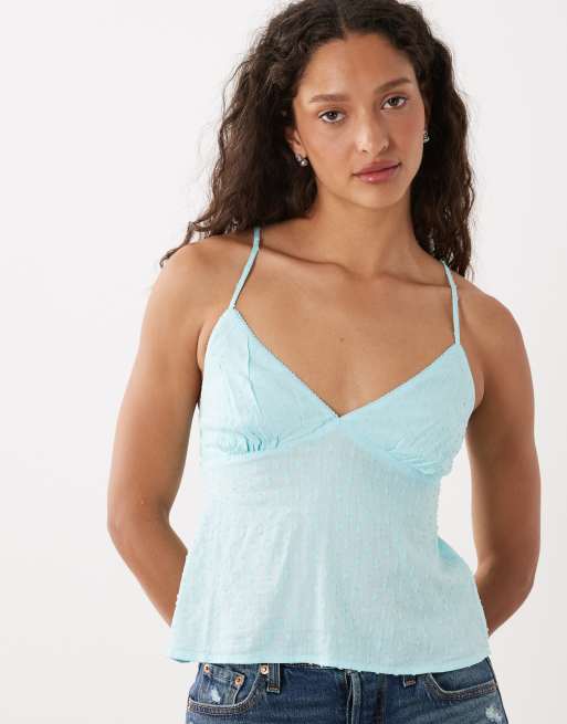 Cotton On - Top azul laguna de tirantes con estampado de lunares pequeños de algodón