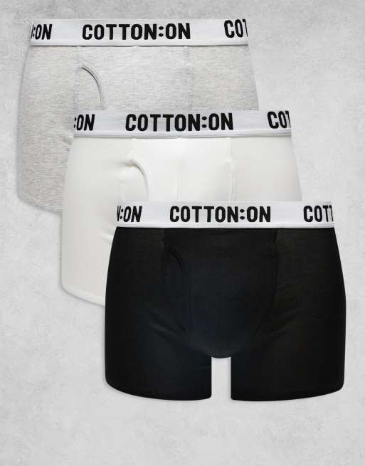 Pack de 3 calzoncillos bóxer de color negro, gris y blanco de Cotton On