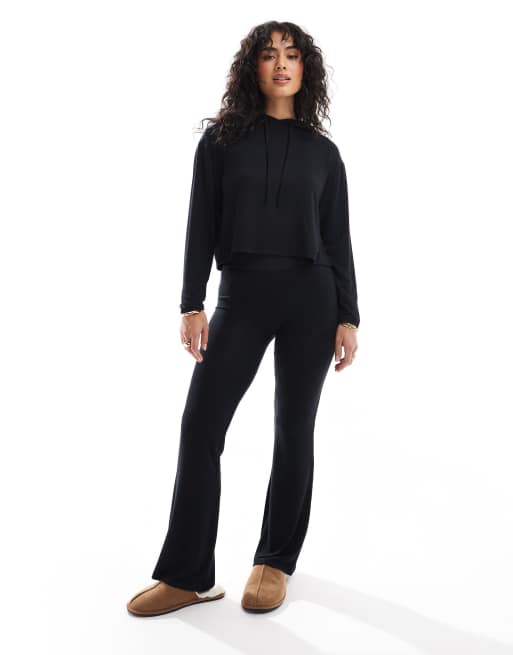Pantalones de pijama negros de corte holgado acampanado de tejido muy suave Asia de Cotton On (parte de un conjunto)
