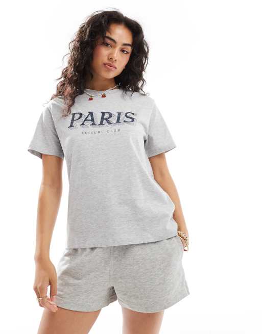 Camiseta gris jaspeado extragrande con estampado gráfico "Paris" de Cotton On