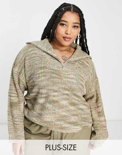 Jersey rosa y verde holgado de punto de hilos mezclados de Daisy Street Plus