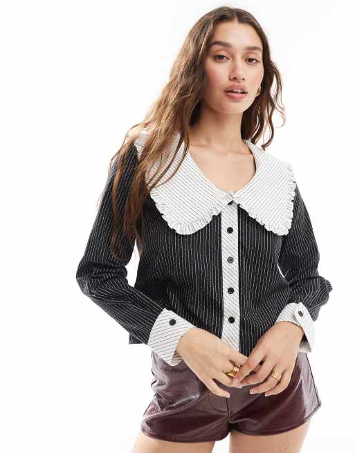 Blusa de manga larga con cuello de pico, botones y diseño de rayas en contraste de Daisy Street