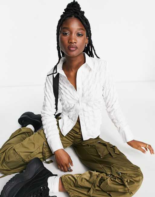 Camisa blanca entallada de estilo años 90 con diseño abombado de Daisy Street