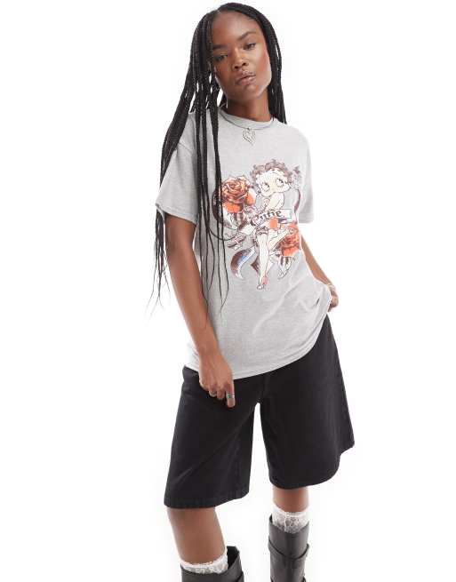 Camiseta gris extragrande con estampado retro de Betty Boop de Daisy Street