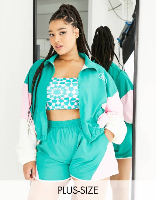 Chaqueta de chándal turquesa con cremallera y diseño color block de Daisy Street Active Plus