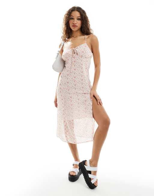 Vestido midi de tirantes con estampado de florecitas rosas y espalda cruzada de Daisy Street