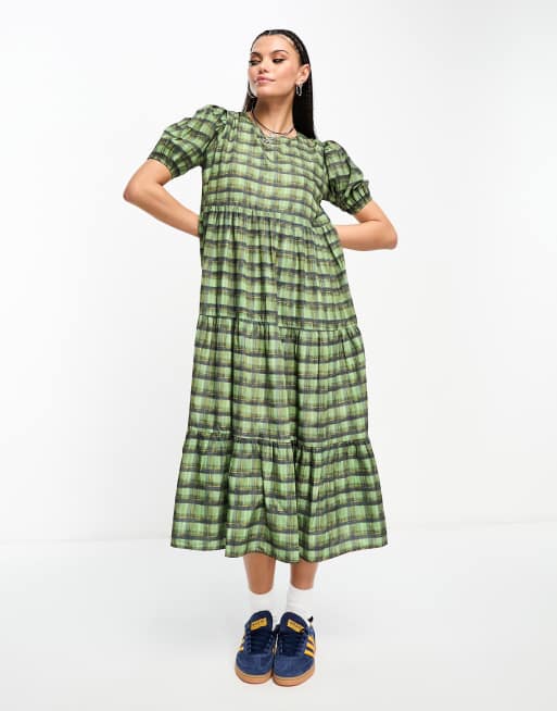 Vestido semilargo a cuadros verdes y marrones amplio y escalonado de Daisy Street