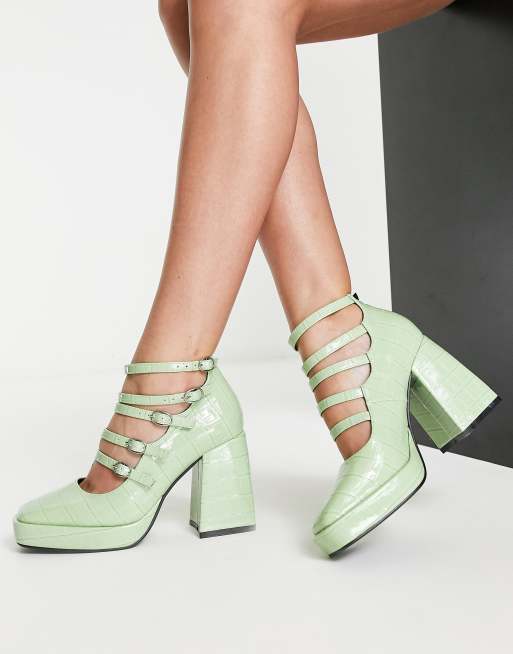 Zapatos verde salvia de tacón con diseño de tiras de Daisy Street