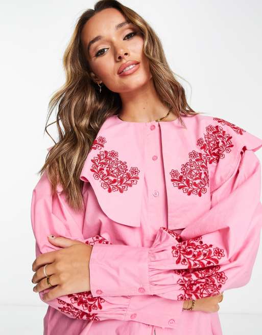 Blusa rosa con detalles bordados de popelina de Damson Madder