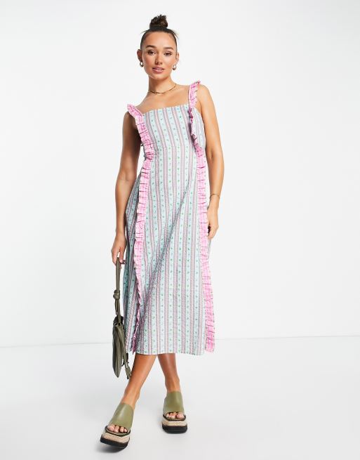 Vestido midi a rayas multicolor con estampado de frutas estilo chint de Damson Madder