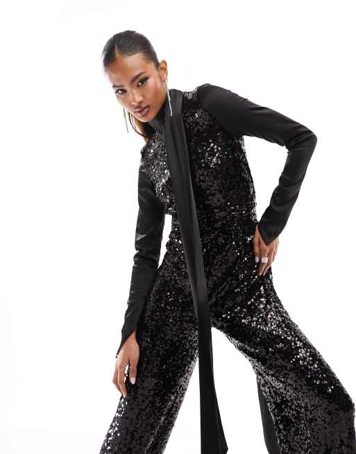 Mono largo negro de pernera ancha de lentejuelas de Daska