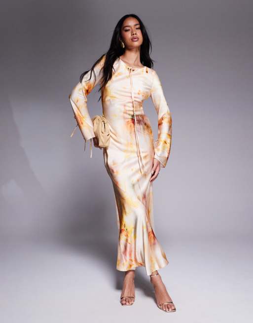 Vestido largo con estampado floral abstracto de satén de Daska