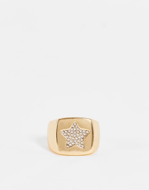 Anillo dorado grueso con diseño de estrella de pedrería de DesignB London