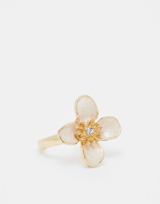 Anillo dorado y rosa pálido con diseño de flor de DesignB London