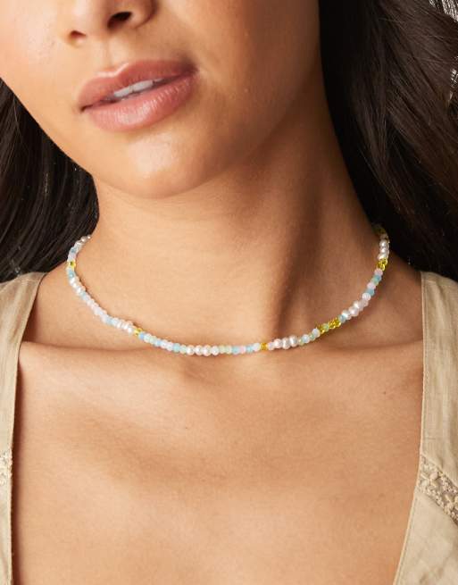 Collar amarillo pastel de cuentas de DesignB London