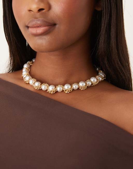 Collar dorado con diseño llamativo retorcido con perlas de DesignB London